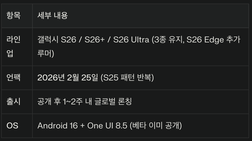 안녕하세요! 오늘은 2월 25일 언팩을 앞두고 있는 삼성의 차기작, 갤럭시 S26 시리즈에 대한 최신 유출 정보와 루머를 총정리해 드리려고 합니다.