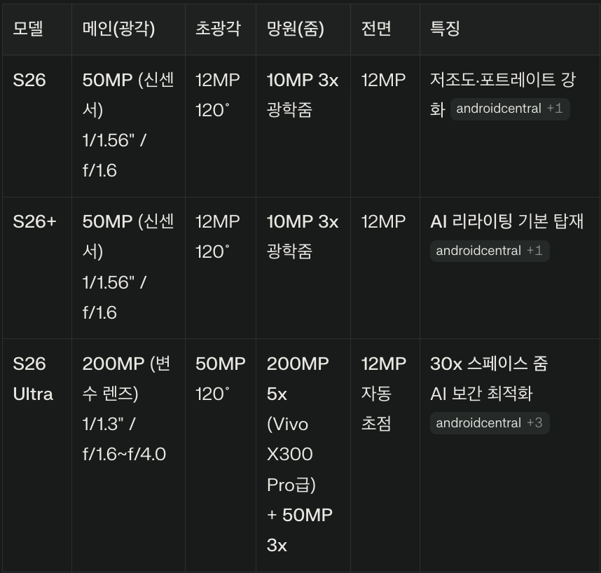 이번 갤럭시 S26은 단순한 옆그레이드가 아닌, 하드웨어 전반에 걸친 대대적인 변화가 예고되어 있습니다.