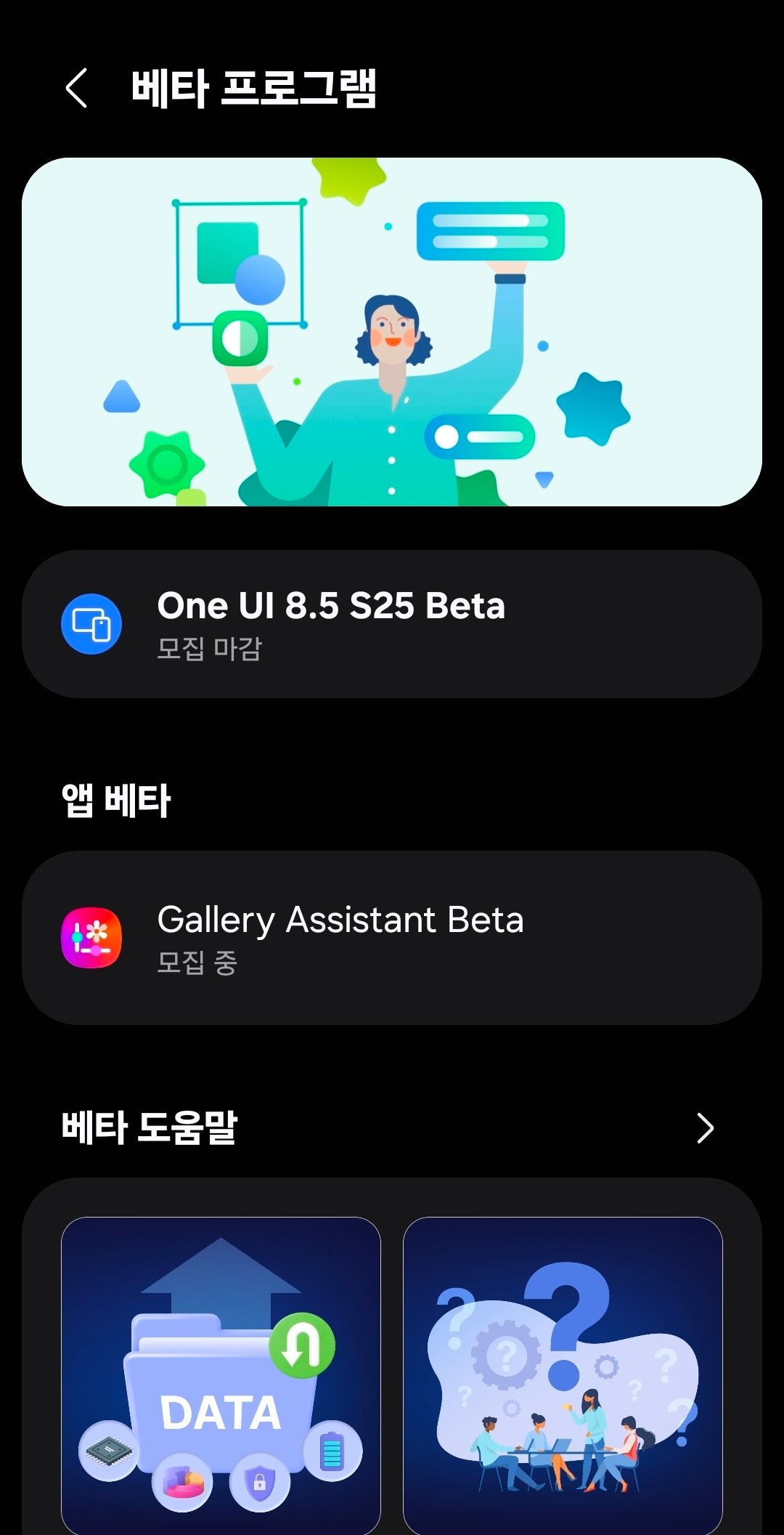 ※ 중요 공지: 2026년 1월 25일부로 One UI 8.5 베타 프로그램의 신규 참가자 모집이 마감되었습니다. 현재 베타 프로그램은 기존 참여자들을 대상으로만 계속 진행되고 있으며, 새로운 사용자는 2026년 2월 26일 예정된 정식 버전 출시를 기다려야 합니다.